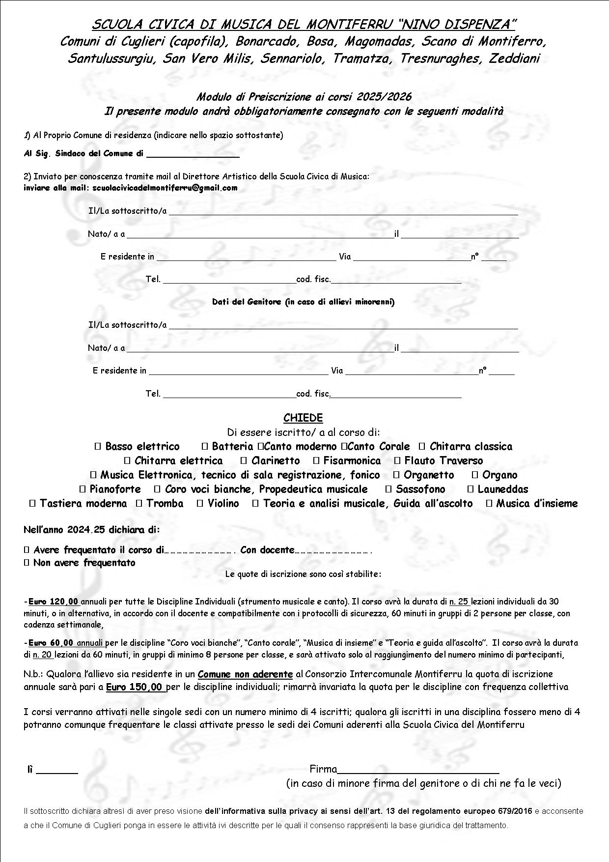 Le domande sono disponibili anche in Biblioteca e vanno presentate all'Uffico protocollo del Comune anche via Mail protocollo@comune.sanveromilis.or.it e per conoscenza alla Scuola stessa: scuolacivicadelmontiferru@gmail.com