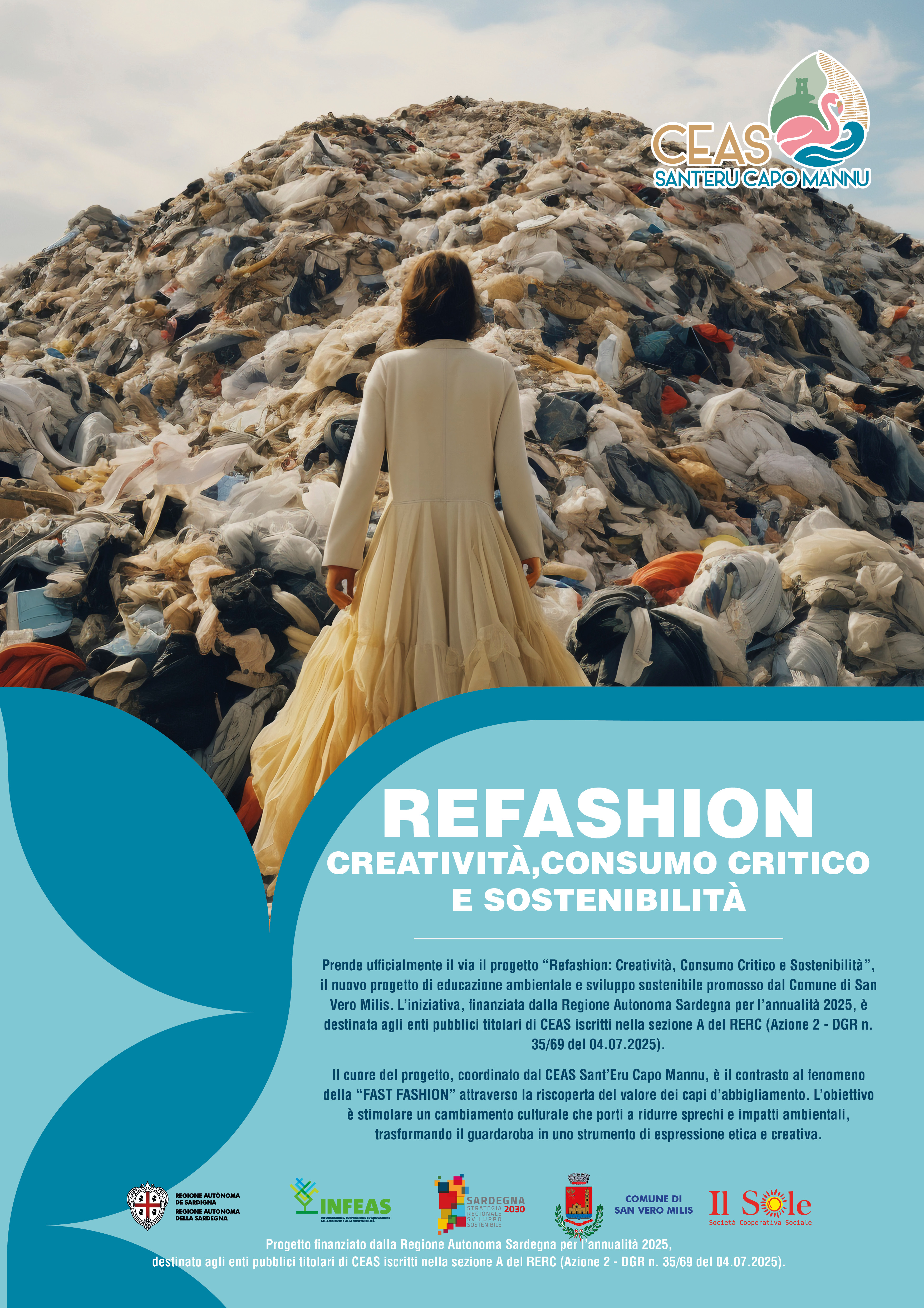 Prende ufficialmente il via il progetto “Refashion: Creatività, Consumo Critico e Sostenibilità”, il nuovo progetto di educazione ambientale e sviluppo sostenibile promosso dal Comune di San Vero Milis. L'iniziativa, finanziata dalla Regione Autonoma Sardegna per l’annualità 2025, è destinata agli enti pubblici titolari di CEAS iscritti nella sezione A del RERC (Azione 2 - DGR n. 35/69 del 04.07.2025).
